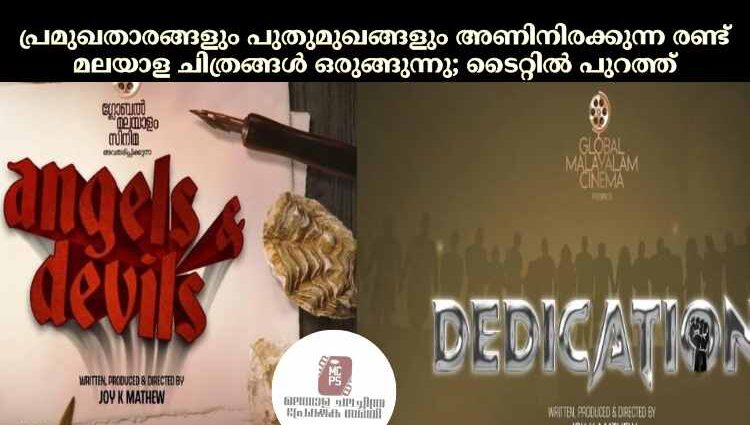 കൊച്ചി: മലയാളത്തിലെ പ്രമുഖ താരങ്ങളെയും പുതുമുഖങ്ങളെയും അണിനിരത്തി ഒരുങ്ങുന്ന രണ്ട് പുതിയ മലയാള ചിത്രങ്ങങ്ങളുടെ ടൈറ്റില് അണിയറ പ്രവർത്തകർ പുറത്തുവിട്ടു. കൊച്ചിയിലായിരുന്നു ടൈറ്റില് റിലീസ് ചടങ്ങ്. ആദ്യ രണ്ട് മലയാള സിനിമകളില് ഒന്നായ ‘ഡെഡിക്കേഷൻ ‘ സിനിമയുടെ ടൈറ്റില് പോസ്റ്റർ ചലച്ചിത്ര താരം മെറീന മൈക്കിളും രണ്ടാമത്തെ ചിത്രമായ ‘എയ്ഞ്ചല്സ് & ഡെവിള്സ് ‘ചലച്ചിത്ര താരം മാലപാർവതിയും പ്രകാശനം ചെയ്തു.
