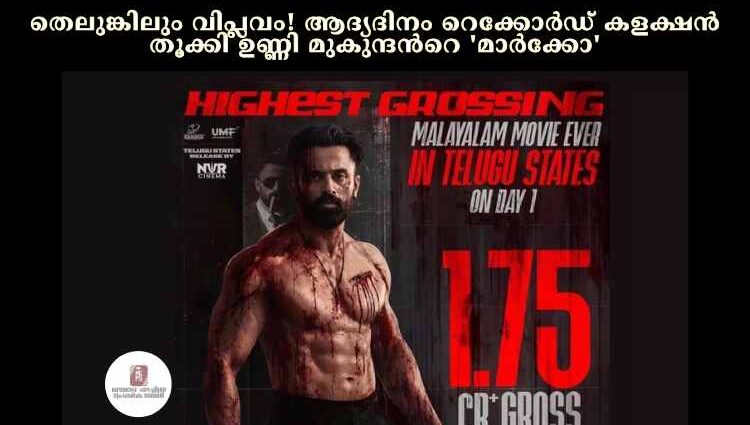 മലയാളത്തിന് പുറമെ ഇതര ഭാഷകളിലും ‘മാർക്കോ’യുടെ ആവേശം അലയടിക്കുകയാണ്. ഹിന്ദിയില്‍ ചിത്രത്തിന് ലഭിച്ച മികച്ച വരവേല്‍പ്പിന് പിന്നാലെ തെലുങ്കിലും മാർക്കോ കൊടുങ്കാറ്റ് ആഞ്ഞടിച്ചിരിക്കുകയാണ്. തെലുങ്കില്‍ ഒരു മലയാള സിനിമയ്ക്ക് ലഭിക്കുന്ന ഏറ്റവും വലിയ കളക്ഷൻ സ്വന്തമാക്കിയിരിക്കുകയാണ് ഈ ഉണ്ണി മുകുന്ദൻ ചിത്രം. 1.75 കോടി ഗ്രോസ് കളക്ഷനാണ് തെലുങ്കില്‍ ആദ്യ ദിനം ചിത്രം നേടിയിരിക്കുന്നത്.