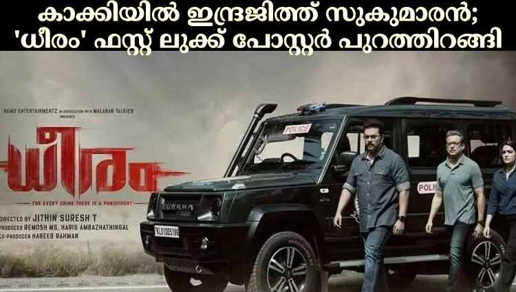 ഇന്ദ്രജിത്ത് സുകുമാരൻ, നിഷാന്ത് സാഗർ, ദിവ്യാപിള്ള എന്നിവർ പ്രധാന വേഷങ്ങളിലെത്തുന്ന ധീരം എന്ന ചിത്രത്തിന്റെ ഫസ്റ്റ് ലുക്ക് പോസ്റ്റർ പുറത്തുവിട്ടു.
