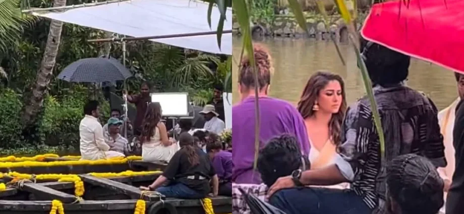 ഒരു മലയാളി യൂട്യൂബ് വ്ലോഗിലൂടെയാണ് ദൃശ്യം പുറത്തുവന്നത്. അലങ്കരിച്ച വഞ്ചിയിലാണ് ചിരഞ്ജീവിയും നയൻതാരയും ഉള്പ്പെടുന്ന രംഗങ്ങളുടെ ചിത്രീകരണം. ഇത്തരം വഞ്ചികള് നീങ്ങുന്നതും താരങ്ങളെ ഇതിലിരുത്തി ചിത്രീകരിക്കുന്നതുമെല്ലാം പുറത്തുവന്ന വീഡിയോയിലുണ്ട്. ചിത്രീകരണശേഷം ചിരഞ്ജീവിയും നയൻതാരയും തിരികെ കരയിലേക്ക് വരുന്നതും കാണാം. ഒരു വിവാഹരംഗമാണോ ചിത്രീകരിക്കുന്നതെന്ന സംശയവും യൂട്യൂബർ പ്രകടിപ്പിക്കുന്നുണ്ട്.
