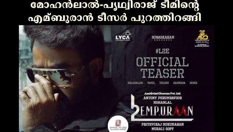 മലയാള സിനിമാ പ്രേക്ഷകർ ഏറെ ആകാംക്ഷയോടെ കാത്തിരിക്കുന്ന ചിത്രമാണ് മോഹൻലാല്-പൃഥ്വിരാജ് ടീമിന്റെ എമ്ബുരാൻ. മുരളി ഗോപിയുടെ തിരക്കഥയില് പൃഥ്വിരാജ് സംവിധാനം ചെയ്യുന്ന ചിത്രത്തിന്റെ ടീസർ ഞായറാഴ്ച പുറത്തിറങ്ങി.