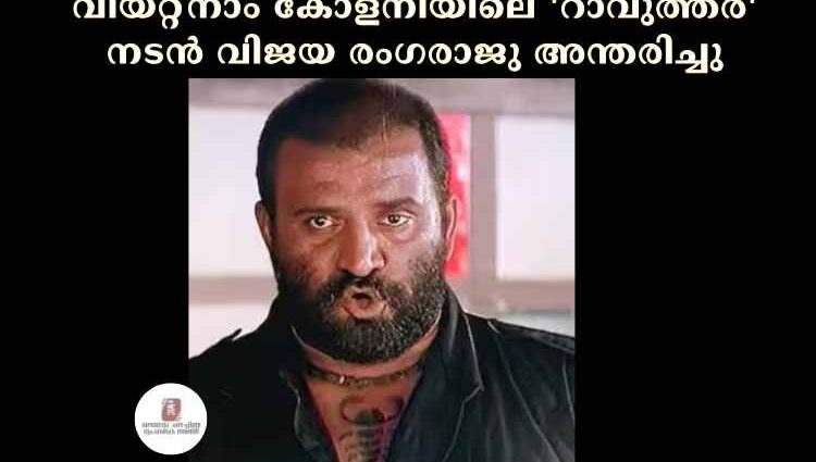 ചെന്നൈ: വിയറ്റ്നാം കോളനിയിലെ ‘റാവുത്തര്’ എന്ന കഥാപാത്രം അവതരിപ്പിച്ച തെലുങ്ക് നടന് വിജയ രംഗരാജു (70) അന്തരിച്ചു. ചെന്നൈയിലെ സ്വകാര്യ ആശുപത്രിയില് ഹൃദയാഘാതത്തെ തുടര്ന്നായിരുന്നു മരണം. കഴിഞ്ഞയാഴ്ച ഹൈദരാബാദില് സിനിമാ ചിത്രീകരണത്തിനിടെ നടന് പരുക്കേറ്റിരുന്നു. തുടര്ന്ന് ചെന്നൈയിലെ സ്വകാര്യ ആശുപത്രിയിലേക്കു മാറ്റി. ഇവിടെ ചികില്സ പുരോഗമിക്കുന്നതിനിടെയാണു മരണം.